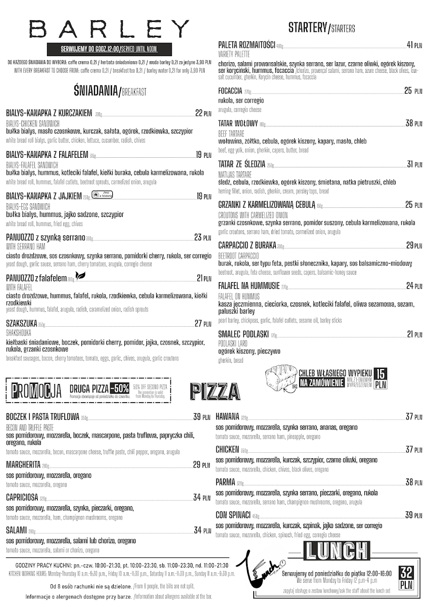 Restauracja BARLEY Menu